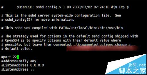 會出現如下提示,大家能夠看到#port 22,代表默認端口22。按下鍵盤的a,vi命令中a是編輯,你按下a之后進入編輯狀態,這時候可以用鍵盤的上下鍵移動綠色光標并用鍵盤的delete鍵刪除前面的#號了。