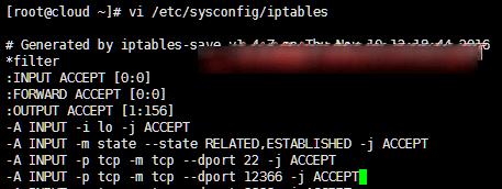 5、現在要做的是把12366端口添加到防火墻列表里面去。Vi編輯器打開防火墻列表的命令如下: