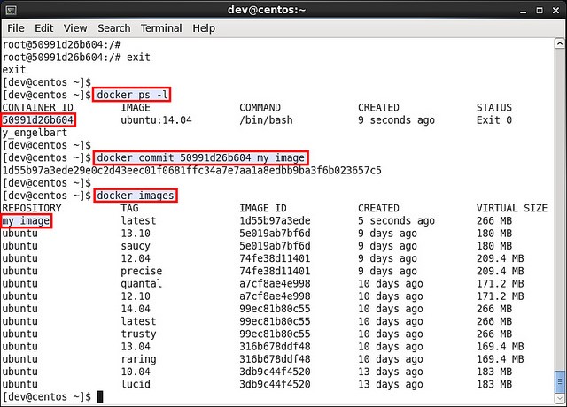 你可以自由的定制一個正在運行的容器(比如,安裝新軟件),如果你想保存當前容器的變更,首先是鍵入 ```exit``` 命令退出交互式模式,然后通過使用這個命令來保存這個變更的鏡像,存儲成一個新的不同的鏡像。