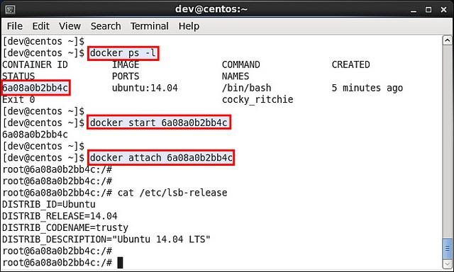 6a08a0b2bb4c ubuntu:14.04 /bin/bash About a minute ago Exit 0 cocky_ritchie