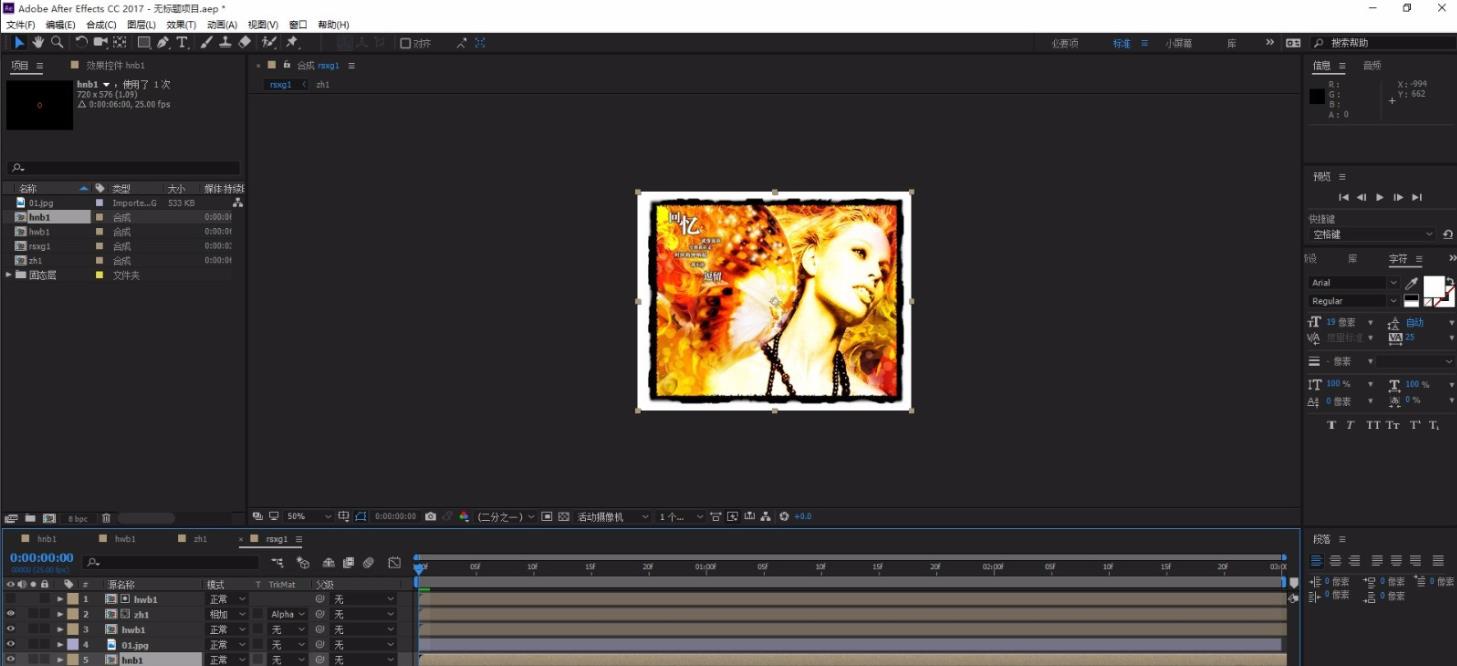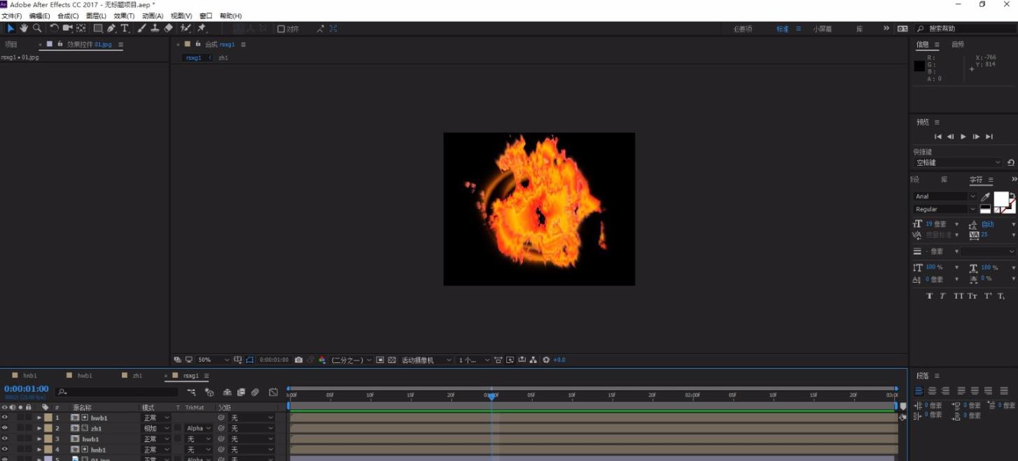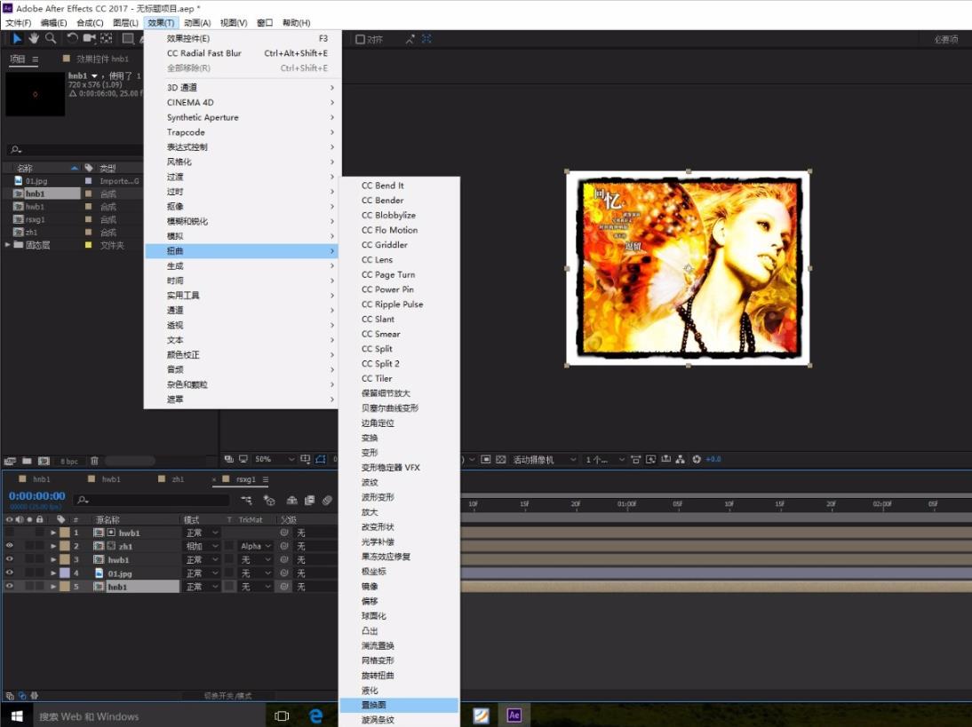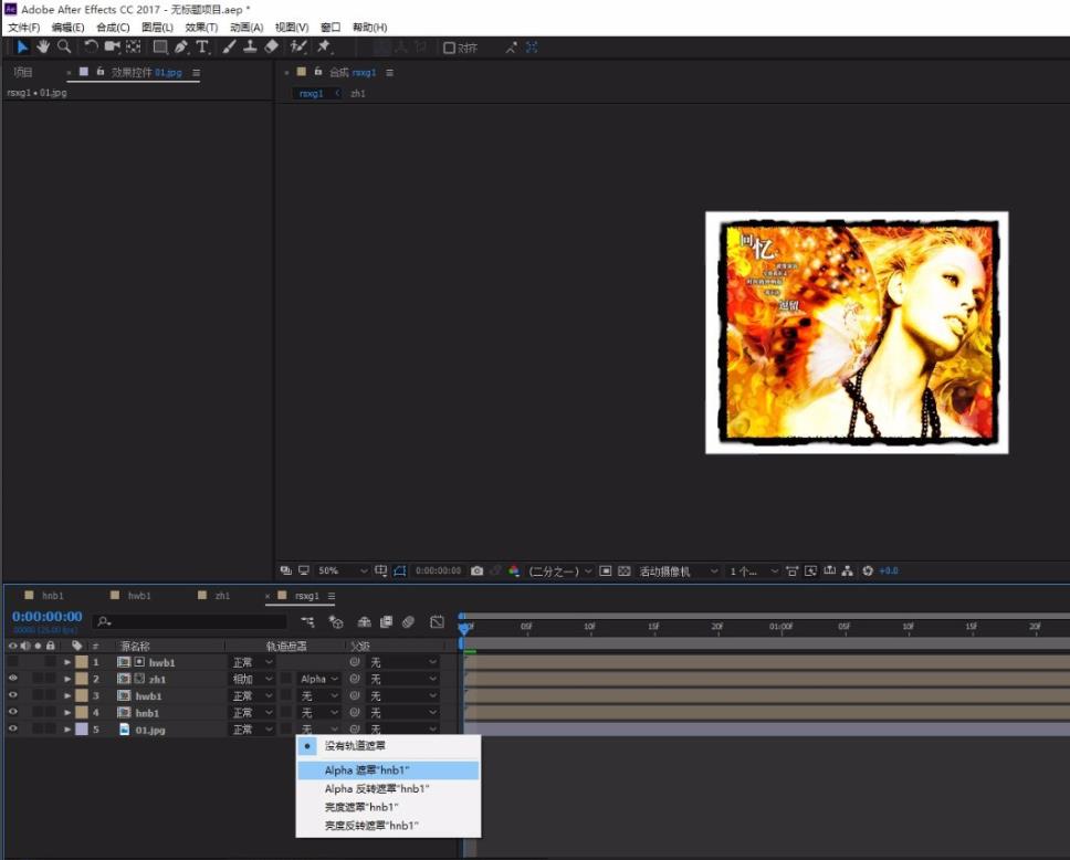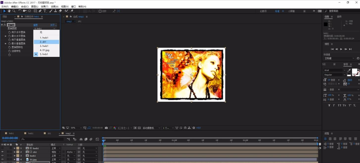 1、先百度 AfterEffects怎樣使用置換圖層,把01和hnb1拖到rsxg1時(shí)間線,