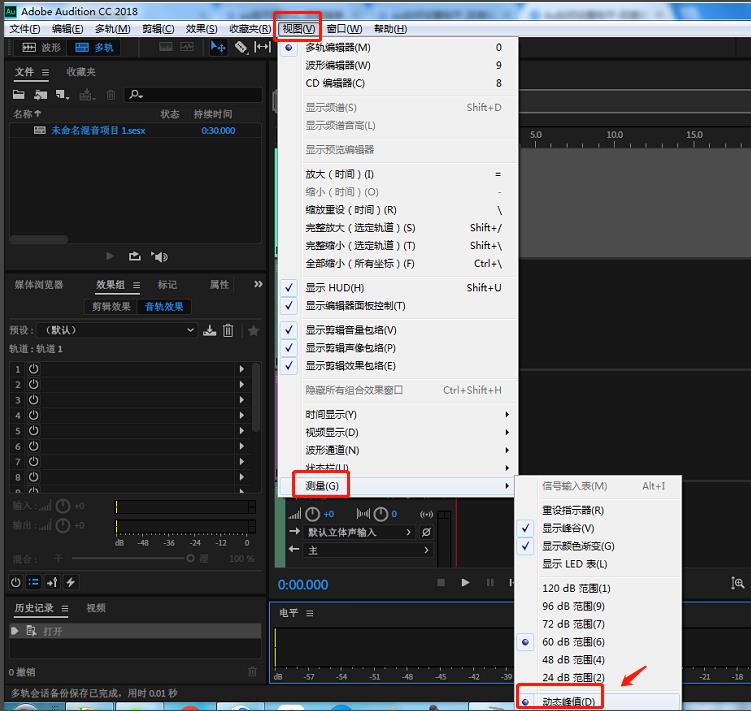 5.再次點擊頂部工具欄中的“視圖”——“測量”——“60dB范圍”。