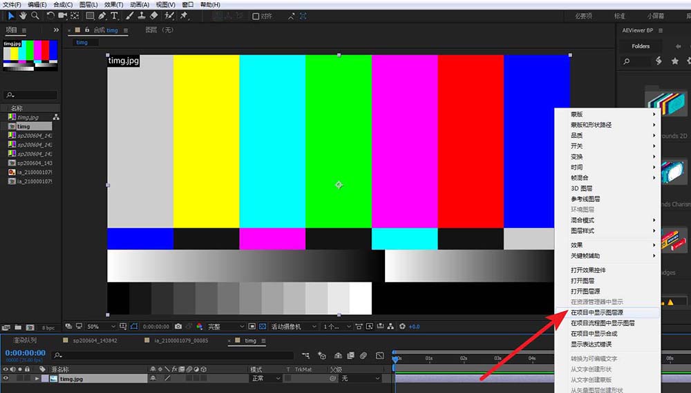 選中素材,右擊找到并點擊-在項目中顯示圖層源
