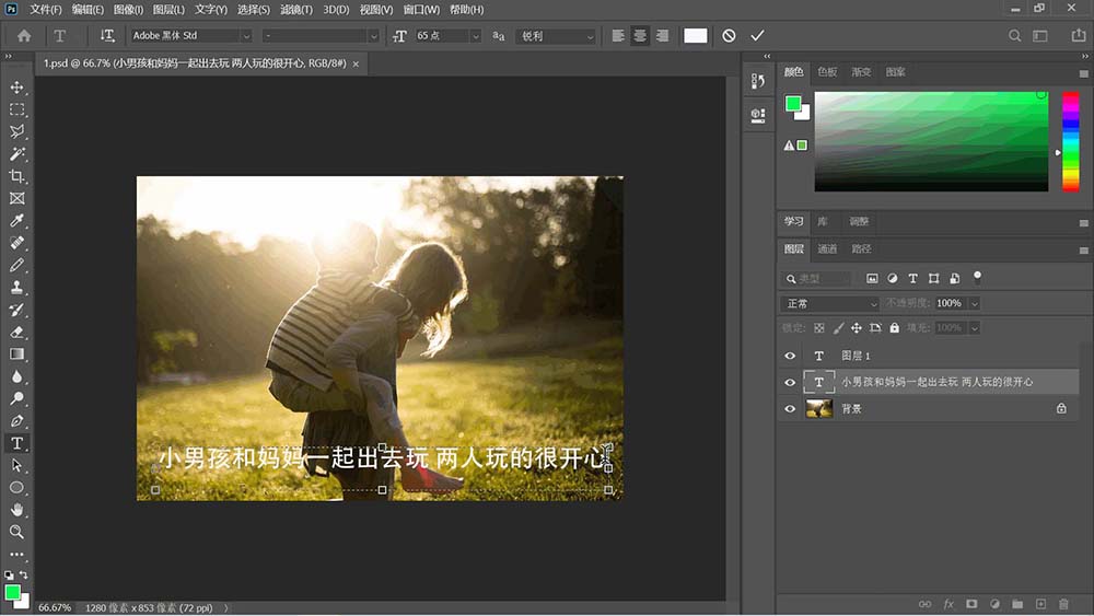 2、點擊文字工具,輸入文字并調整文字格式后導出為psd格式文件。