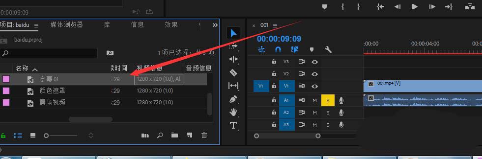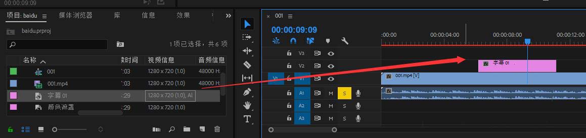 2、項目中會生成剛創(chuàng)建的字幕,并將其拖至視頻的上方,如下圖所示: