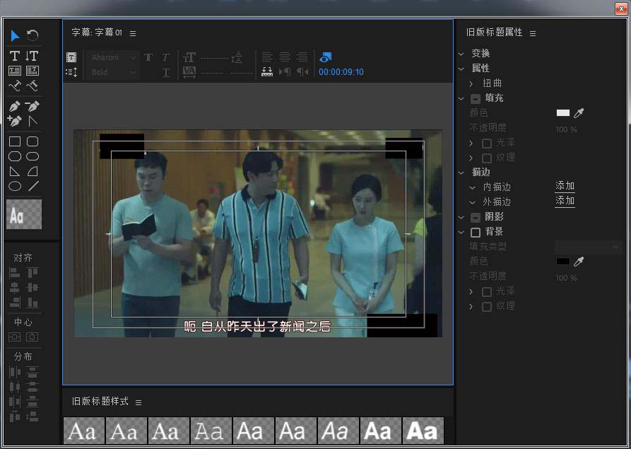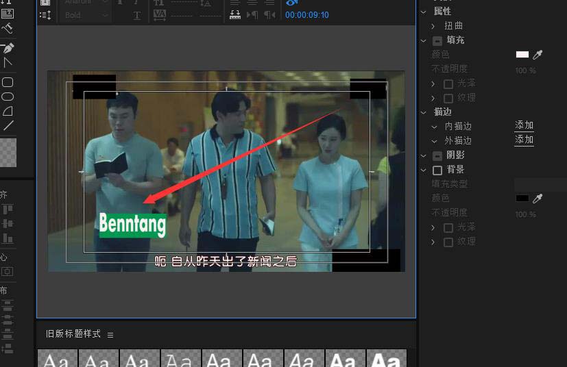 3、最終在創(chuàng)建兩個對立的關(guān)鍵幀,這樣就可以實現(xiàn),底色字幕的出現(xiàn)和顯示以及移動的效果了,如下圖所示: