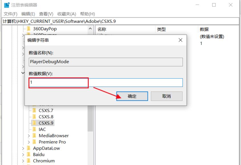 7、雙擊點開,填寫數(shù)值:1,點擊確定,關(guān)閉注冊表。