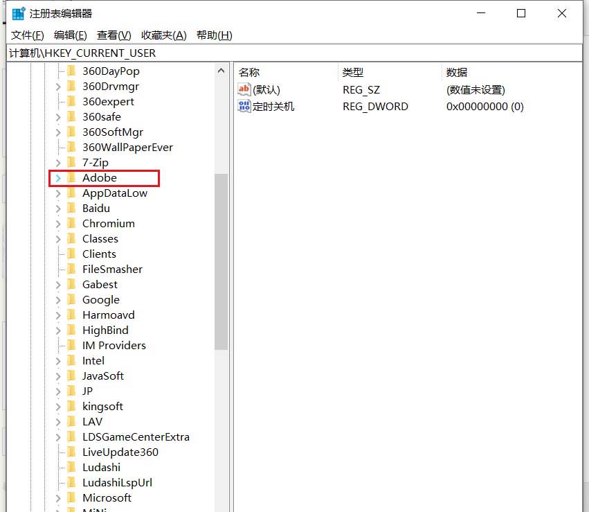 3、再找到Adobe,圖中紅色框內(nèi)。