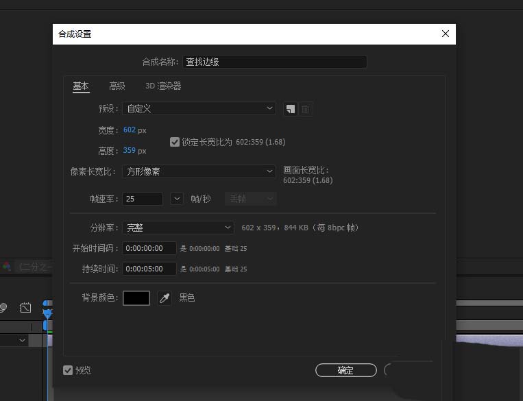 1、打開AE軟件,命名查找邊緣,調整相應的參數。