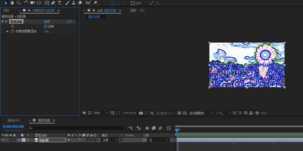 與原始圖像的混合:設置添加查找邊緣的效果與原始圖像的混合程度的設置;百分比數值越大,效果越接近原始圖像;100% 顯示原始圖像;0%完全是添加查找邊緣之后的效果;