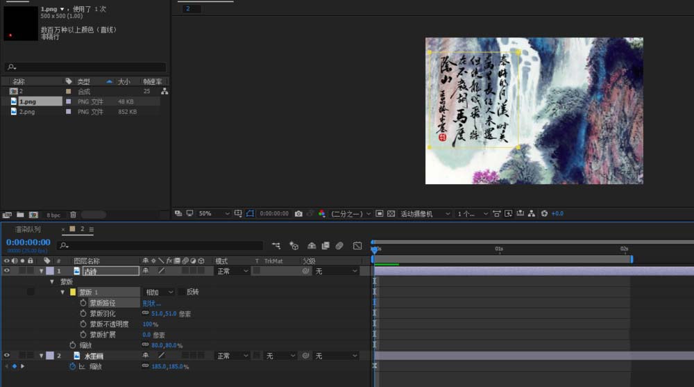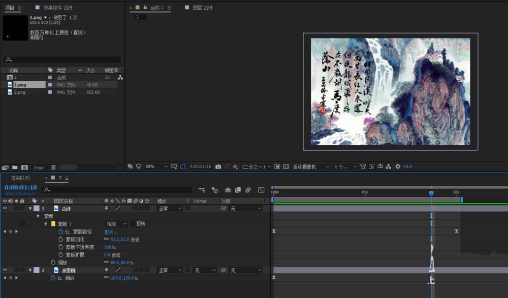 以上就是AE制作水墨畫顯示文字動(dòng)畫效果的教程,希望大家喜歡,請(qǐng)繼續(xù)關(guān)注武林網(wǎng)。