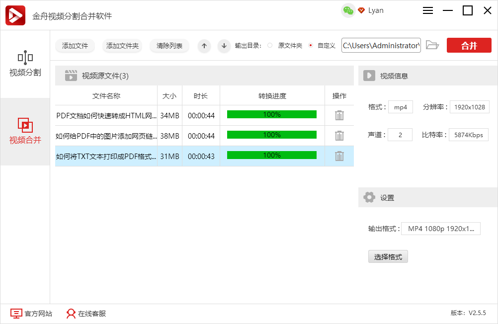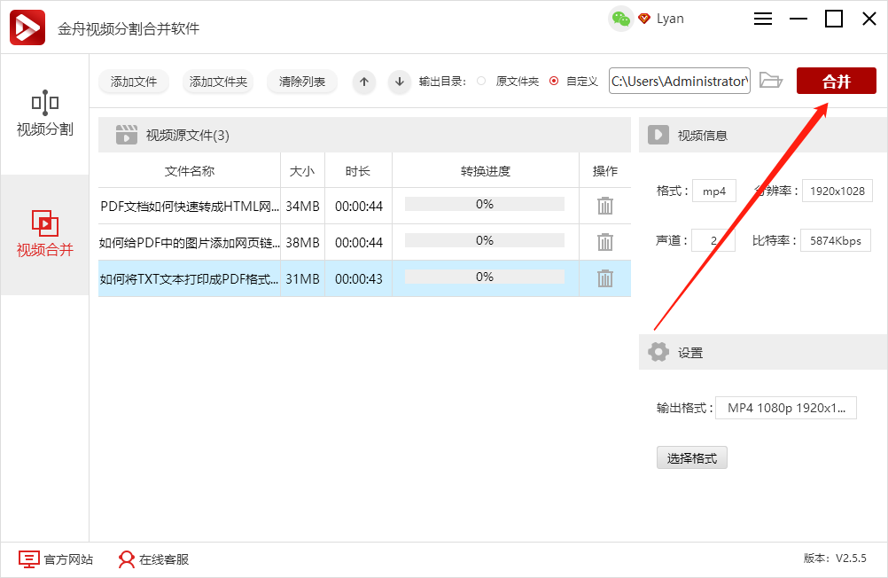 使用金舟視頻分割合并軟件將多個視頻合并的方法介紹