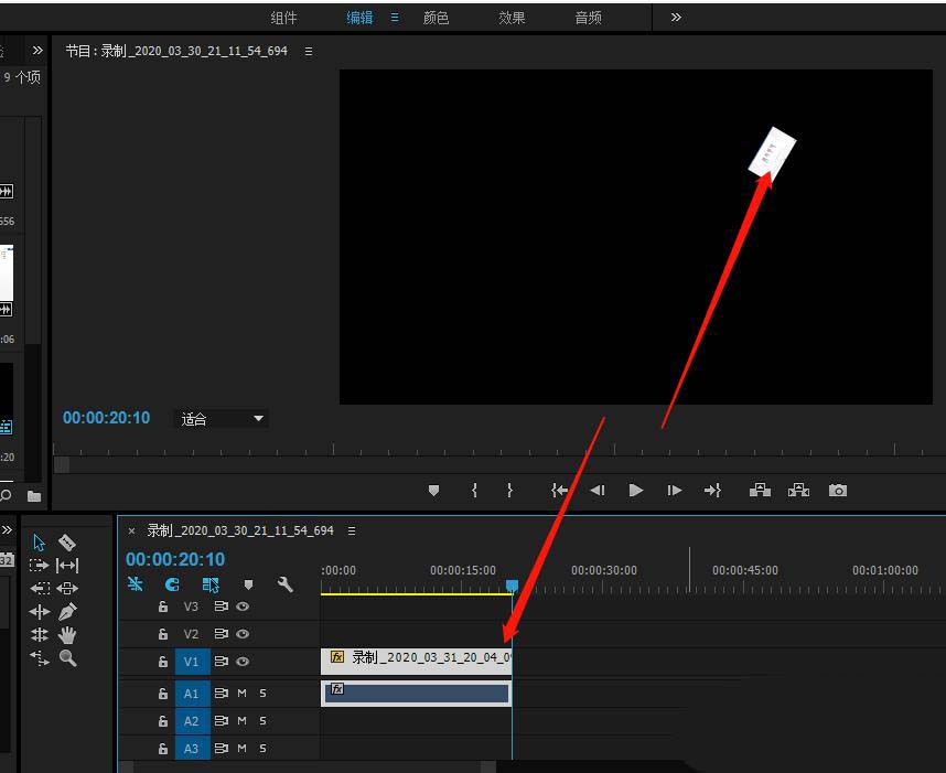 4、此時將鼠標放在畫中畫25%旋轉出點拉動到視頻的制作“軌道”中