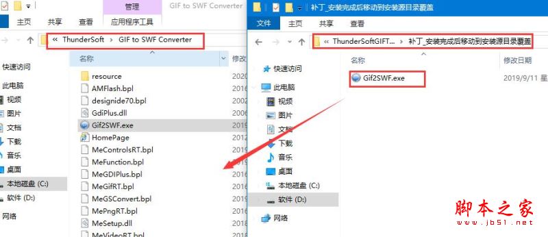 9、將軟件包里的補(bǔ)丁文件夾內(nèi)Gif2SWF.exe粘貼到軟件安裝目錄里(默認(rèn)C:/Program Files (x86)/ThunderSoft/GIF to SWF Converter)