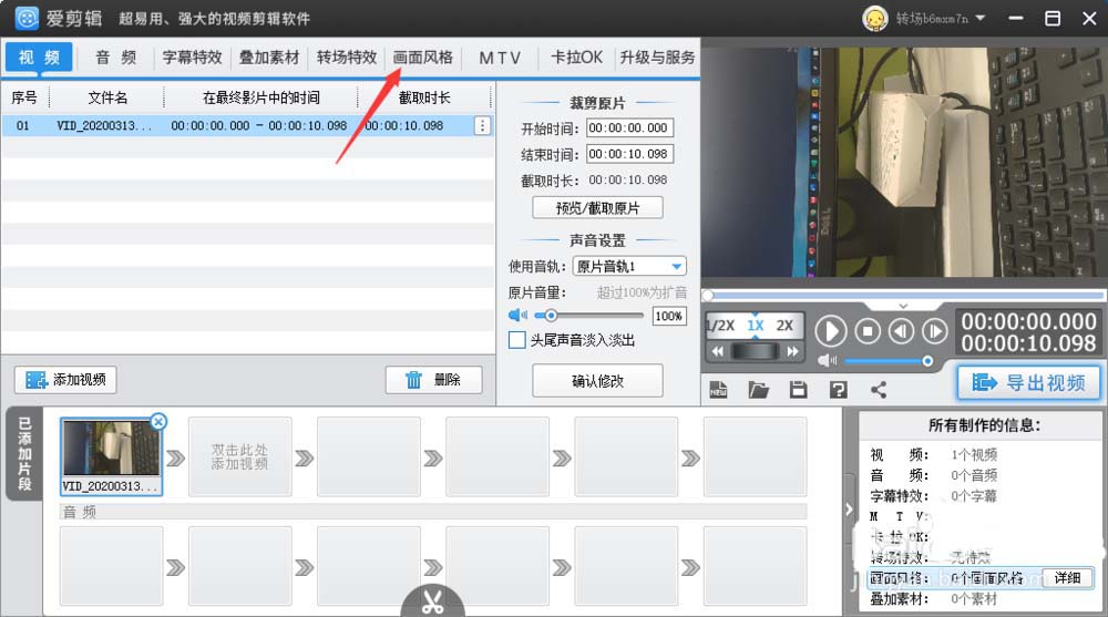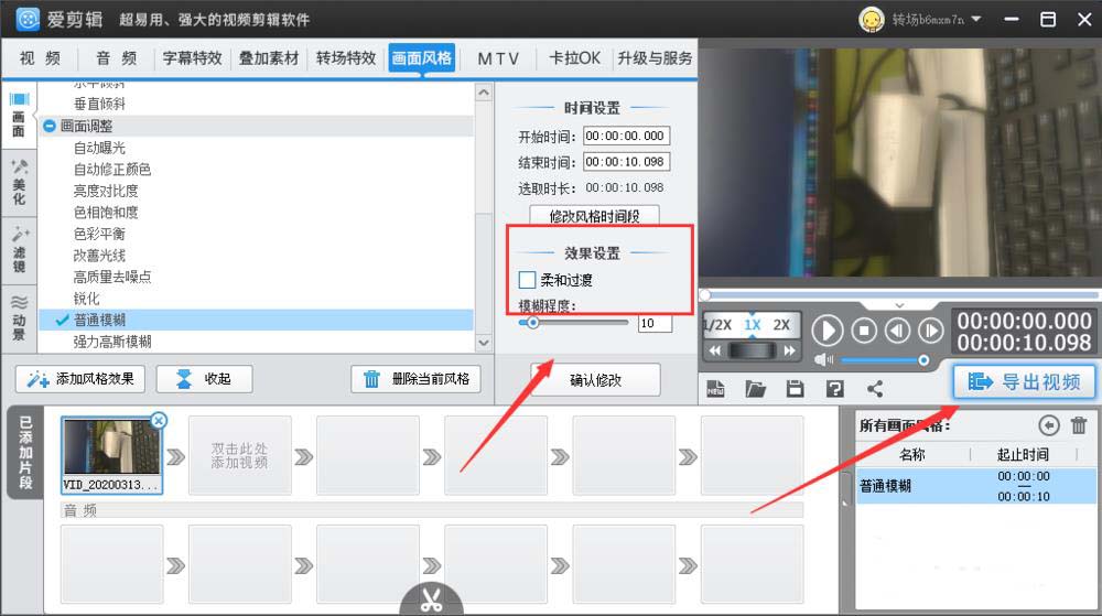 5、效果設(shè)置,確認(rèn)修改,導(dǎo)出視頻。