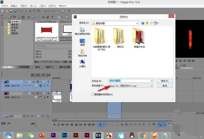 3、選擇vegas的源格式,點(diǎn)擊——保存。