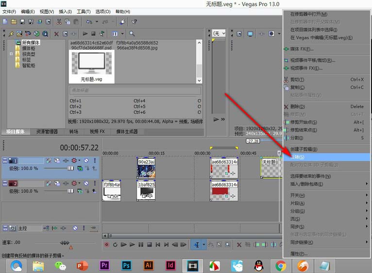 vegas怎么同時粘貼多個相同字幕素材?