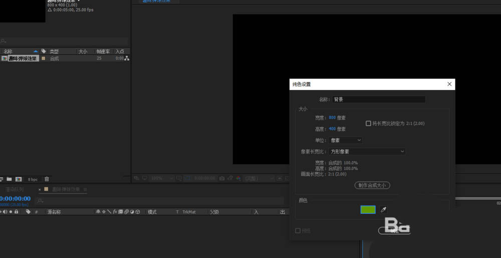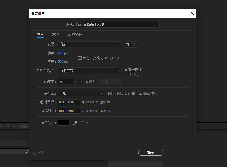 1、打開AE軟件,命名趣味彈球效果,調整相應的參數。