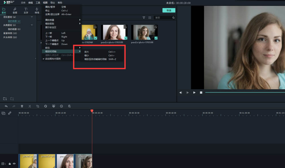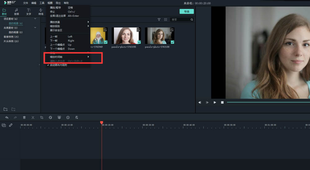 3、出現(xiàn)下拉框后點(diǎn)擊縮放時(shí)間軸。