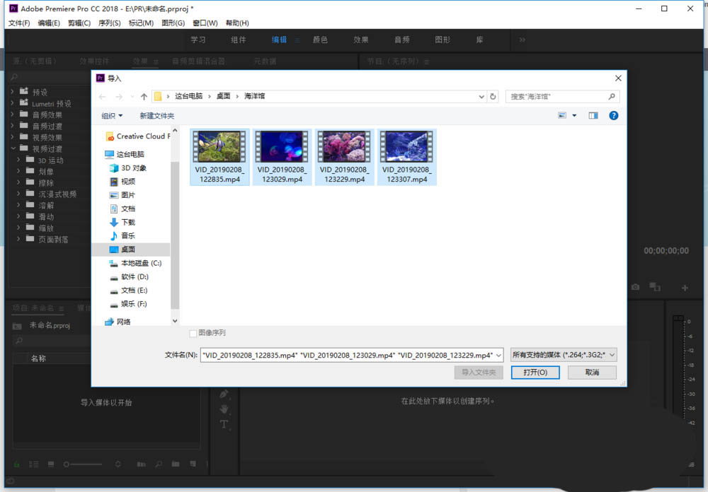 2、在導入窗口中選擇多個視頻,點擊【打開】。