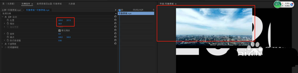 3、選中第二個視頻,調整視頻位置、大小、透明度等(視素材而定)
