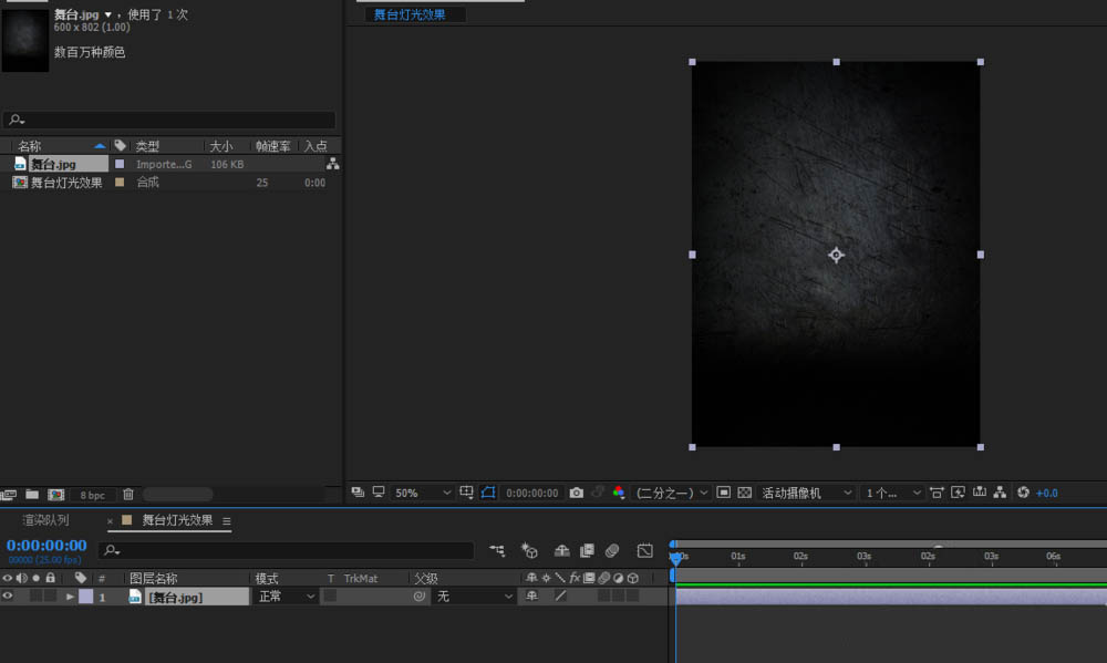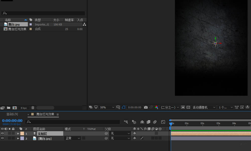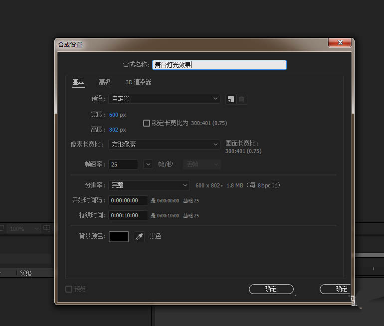 1、打開AE軟件,命名舞臺燈光效果,調整相應的參數。