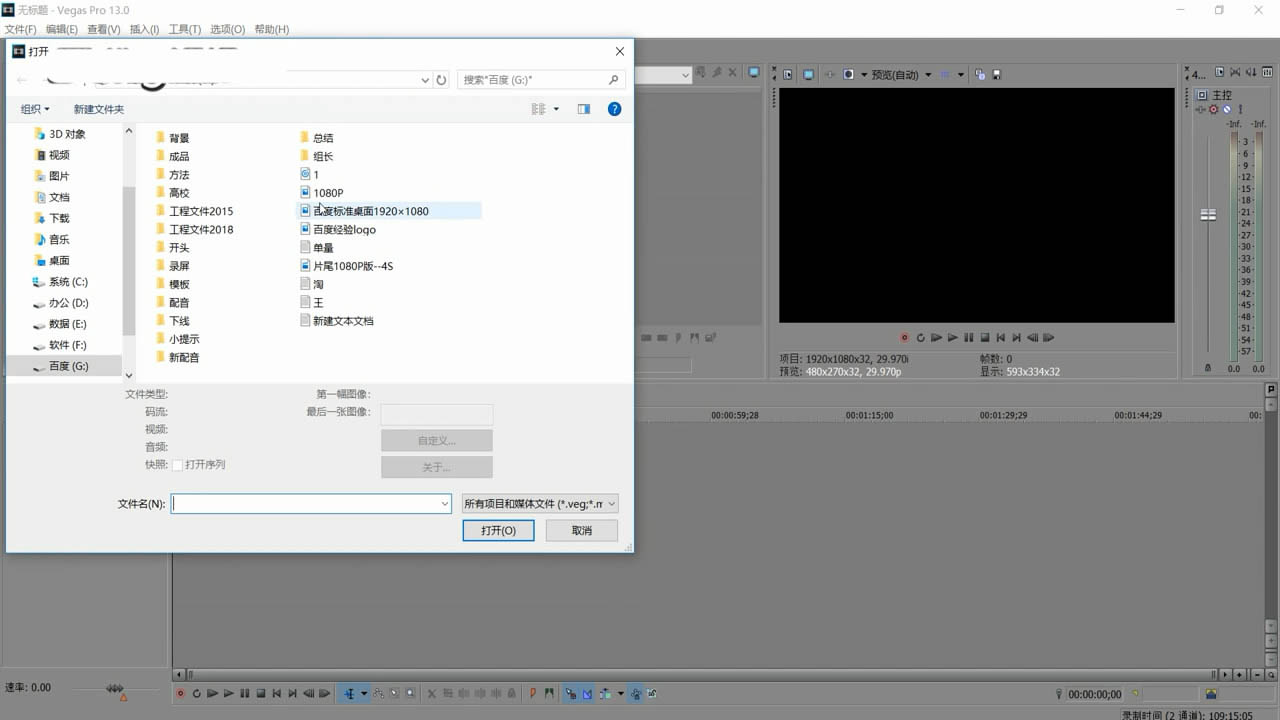 1、打開vegas,點擊文件,點擊打開,選擇素材打開。