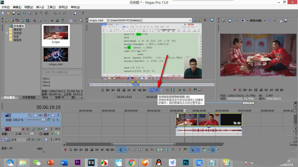 5、然后點擊——從光標處添加到時間線的按鈕。