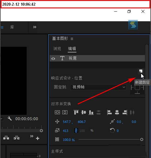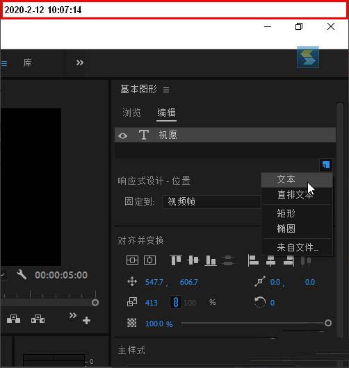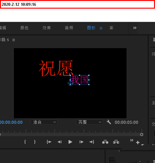 3、在序列這里的視頻軌道生成了圖形素材。節(jié)目面板的右側(cè)顯示出基本圖形的編輯界面