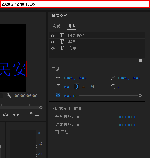 7、如此類推,我們可以輸入更多的文字,并對這些文字分層。看序列中的視頻軌道中,一直顯示一個圖形素材。而在基本圖形這里,即顯示為多個圖層