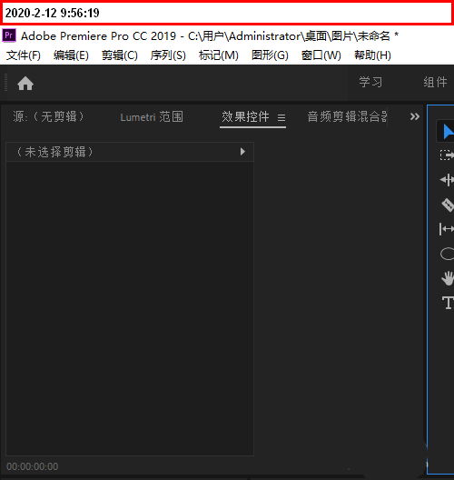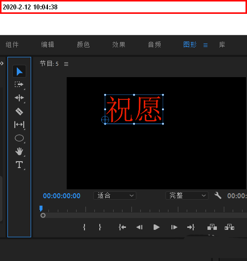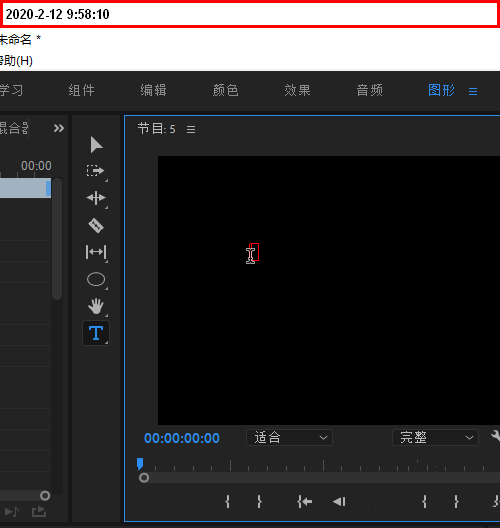 2、鼠標(biāo)移到節(jié)目面板,在文字工具這里點(diǎn)一下,激動文字工具,在面板中點(diǎn)擊一下。