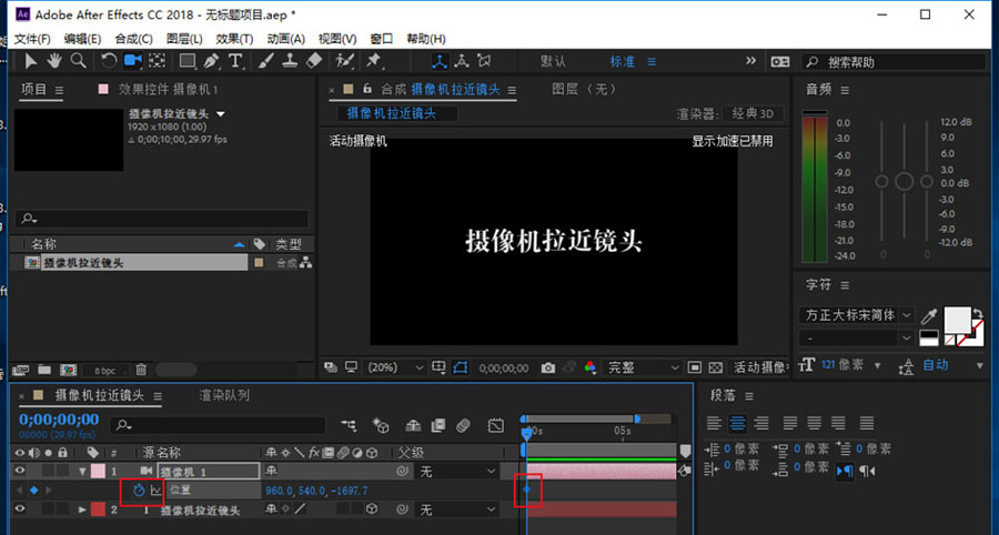8.通過添加關鍵幀實現拉近鏡頭效果。