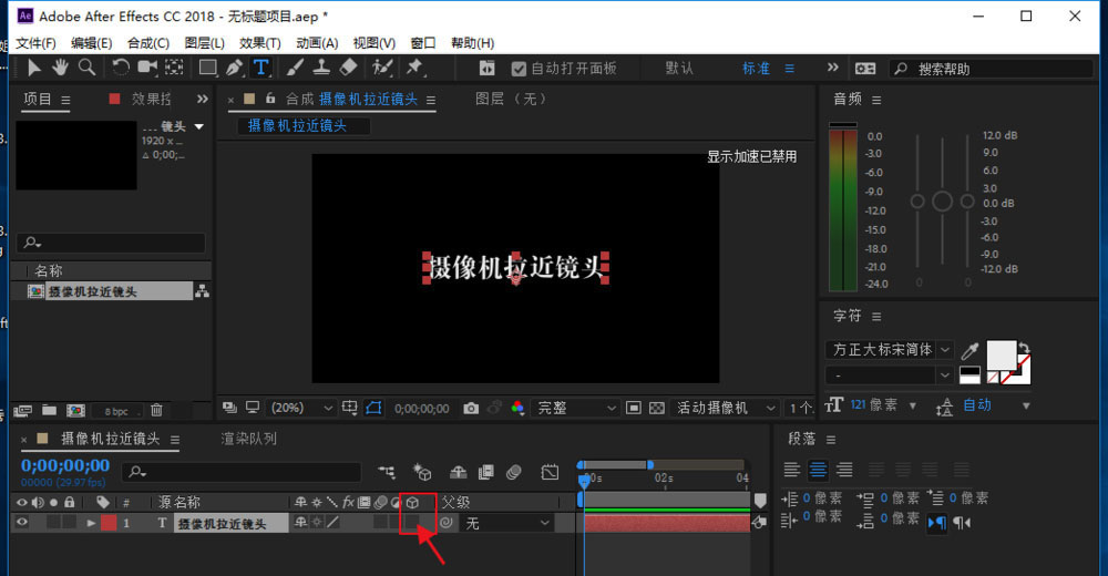 3、將文字層轉換為3d層,點擊3d圖標即可。