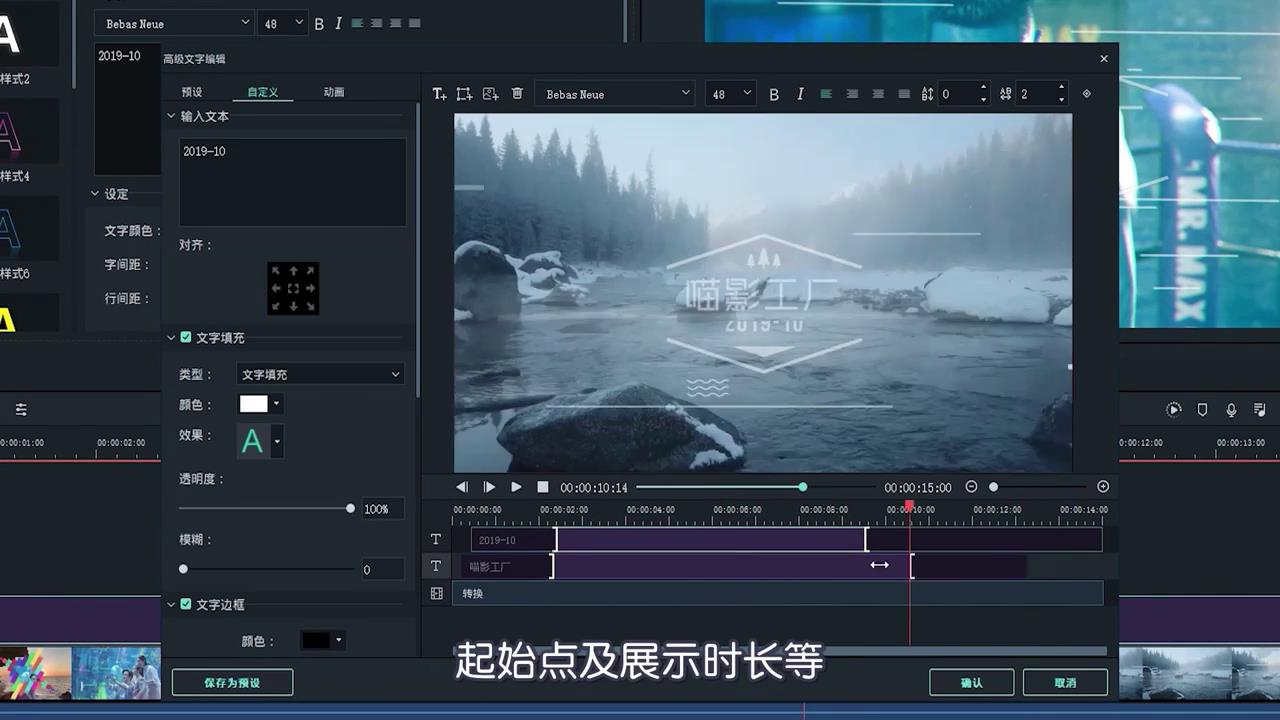 10、可以進入文字的高級模式,調整文字的動畫起始點及展示時長等,調整完成,點擊確認。