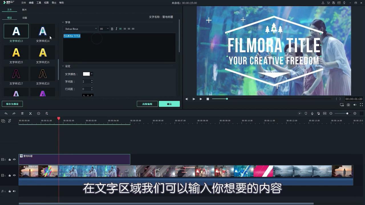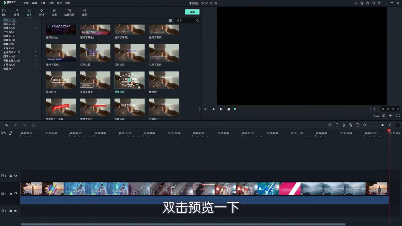 7、將文字素材拖拽到視頻軌道上,雙擊文字素材,在文字區域可以輸入想要的內容。