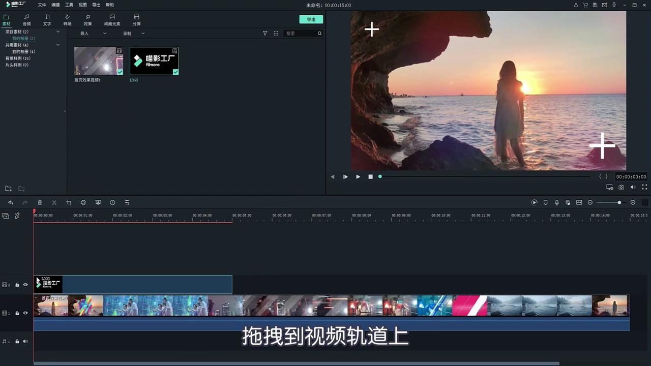 2、點擊確定,將導入進來的logo圖片拖拽到視頻軌道上。