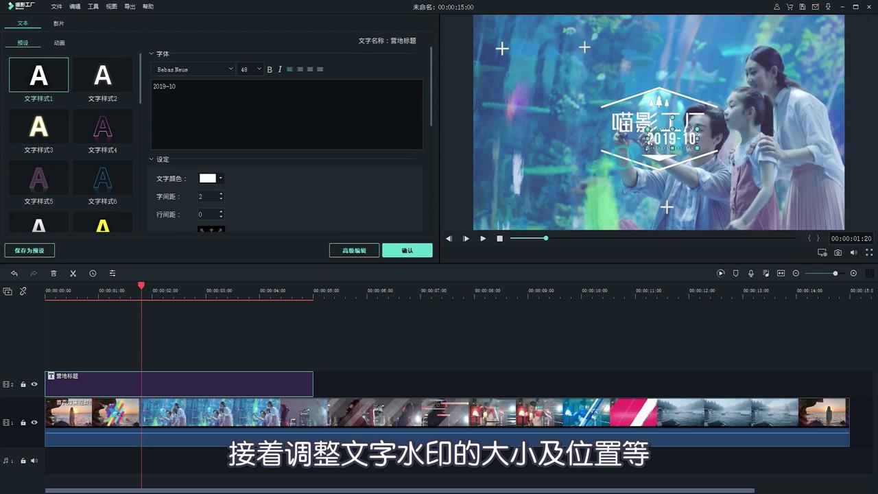 8、制作個性的文字水印,可以更改字體及文字樣式效果,接著調整文字水印的大小及位置等。