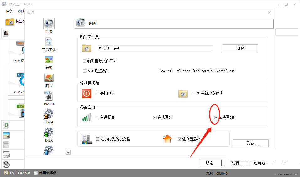 以上就是格式工廠何設置轉換出錯進行通知的技巧,希望大家喜歡,請繼續關注武林網。