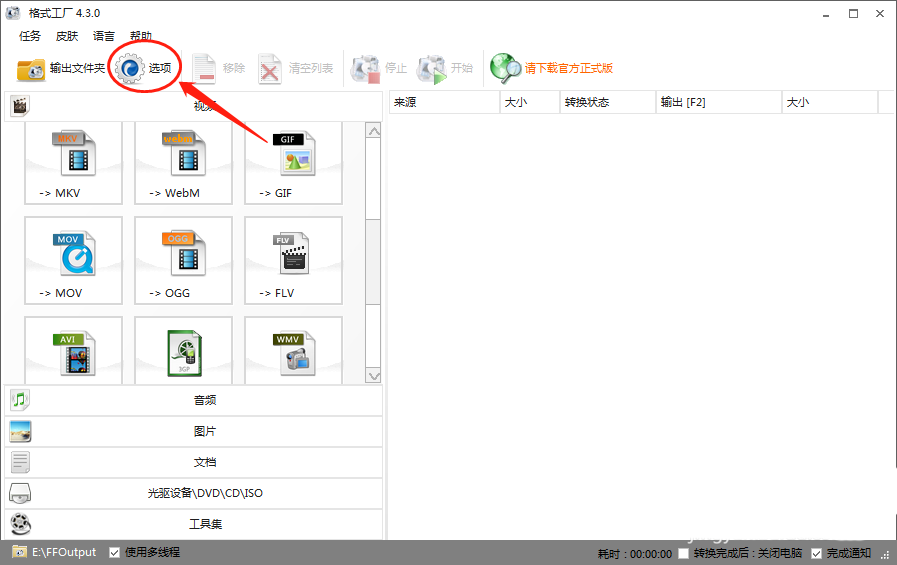 1、打開格式工廠進入設置選項。