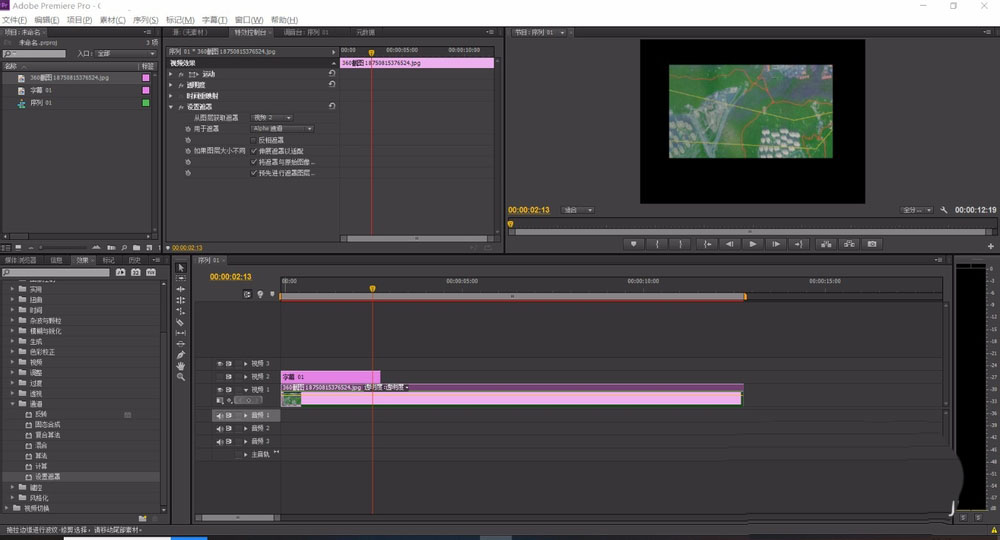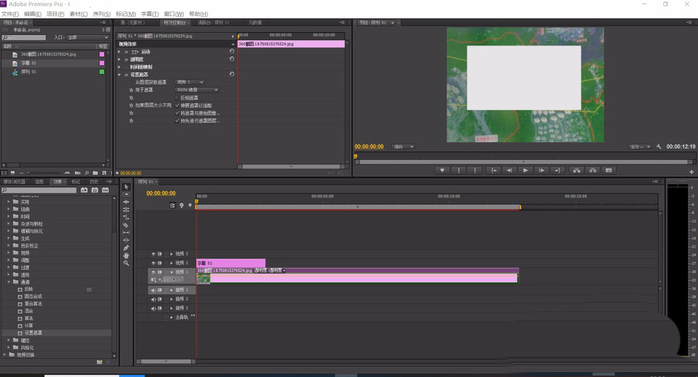 6、選擇設置遮罩,雙擊或拖入素材上,在特效控制臺能看到視頻效果選項中出現遮罩設置。