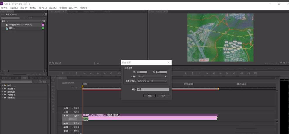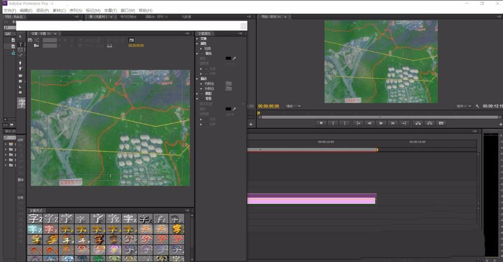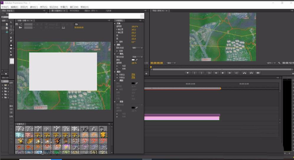 4、在字幕編輯界面中,左側有字幕圖案可以設置,方形,圓角,圓形等,也可以通過鋼筆自己畫出路徑。確定后將字幕拖入序列,放置在新的視頻軌道上。
