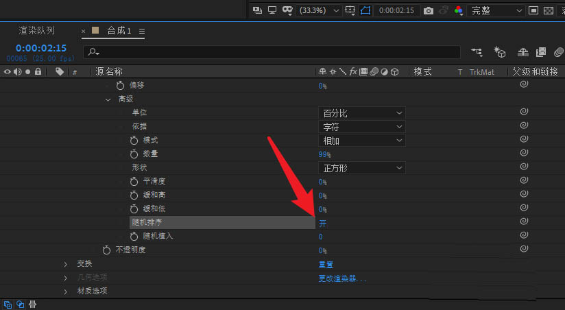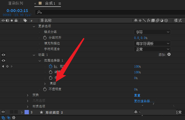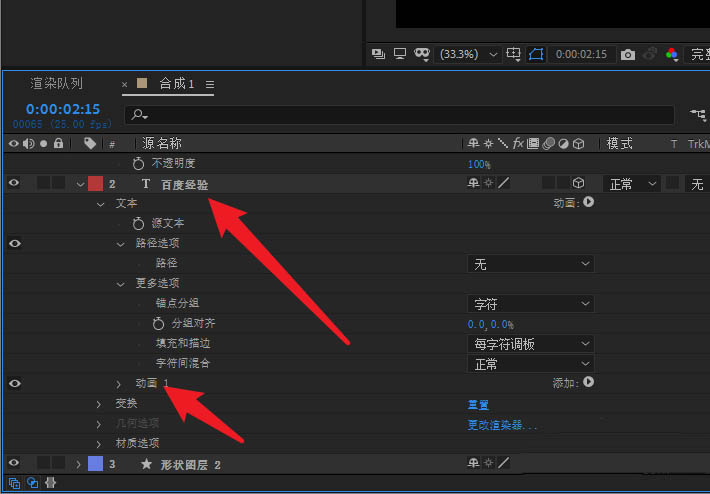 2、接著打開文字圖層選項進入動畫設置。