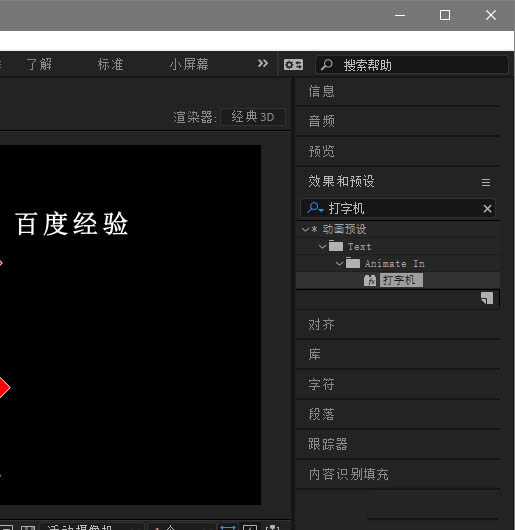 1、首先我們在ae中輸入文字內容并添加打字機效果。