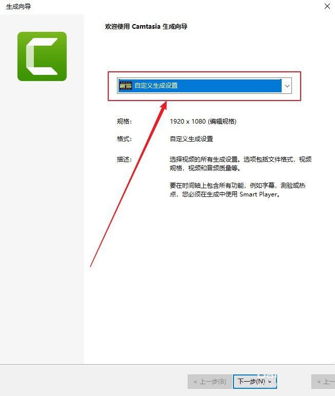 4、在彈出的窗口中點擊“自定義生成設(shè)置”選項。