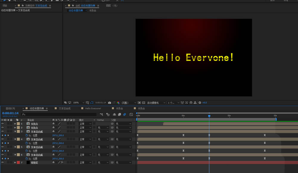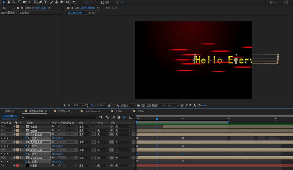 6、選中所有的主文本預(yù)合成,右擊系列圖層,將主文本錯(cuò)開顯示;將長(zhǎng)條預(yù)合成復(fù)制幾個(gè),右擊系列圖層,將主文本錯(cuò)開顯示;
