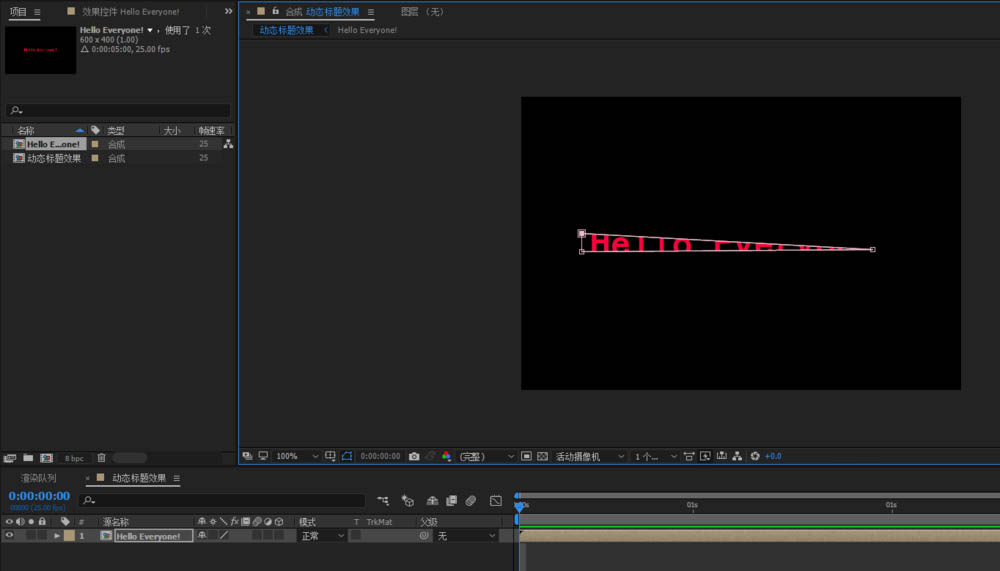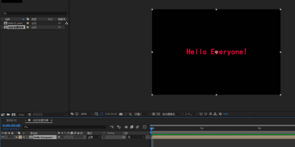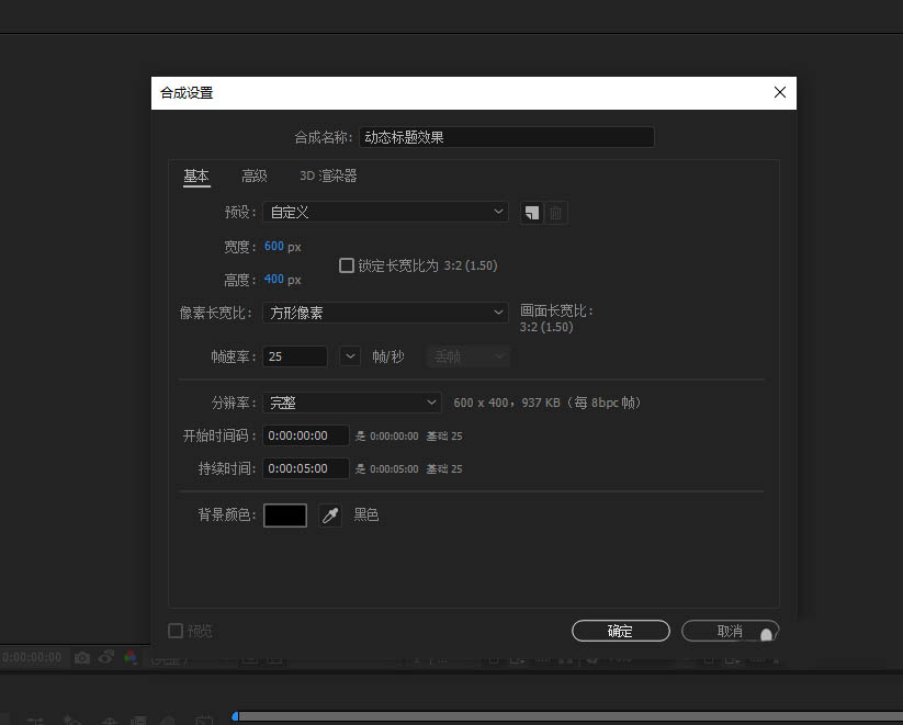 1、打開AE軟件,命名動態標題效果,調整相應的參數。