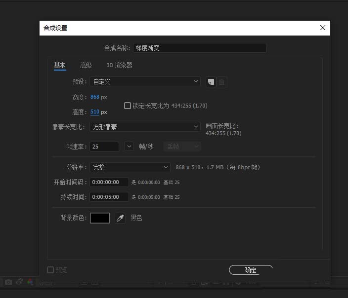 1、打開AE軟件,命名梯度漸變,調整相應的參數。