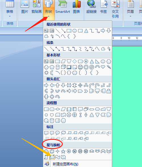 3、單擊三角形處下拉選項中星與旗幟的橫卷形。