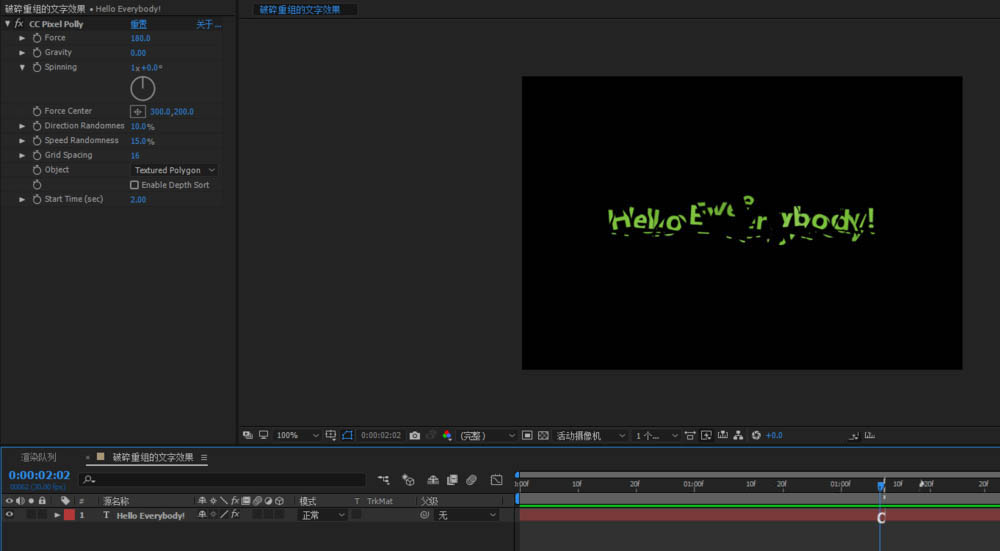 2、ctrl+t輸入自己想要的文字效果,將中心點居中,添加CC pixel polly-CC像素多邊形效果;