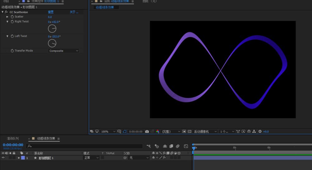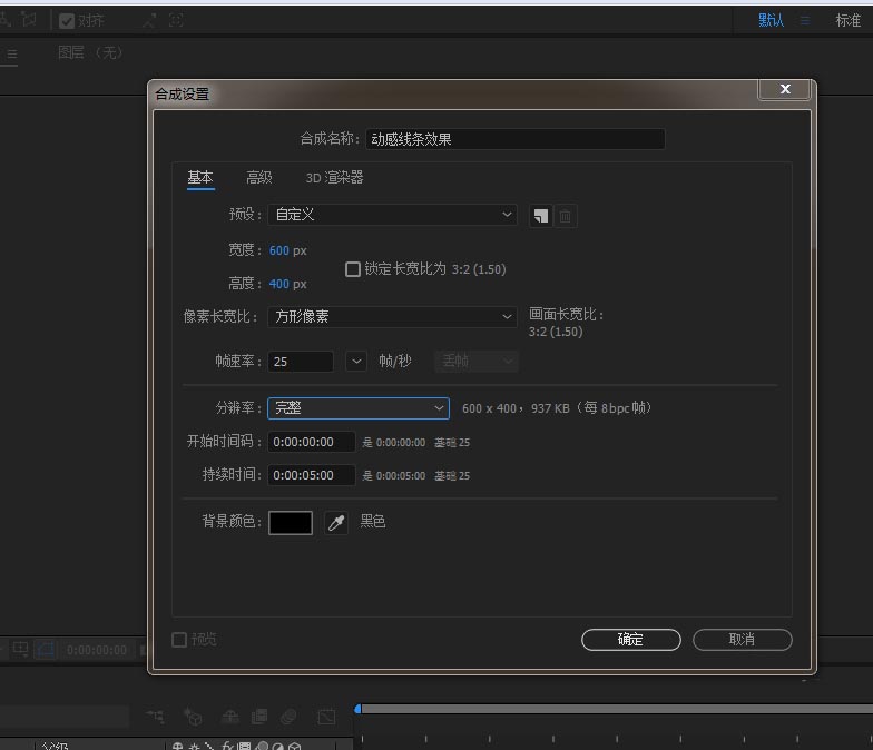 1、打開AE軟件,命名動感線條效果,調整相應的參數。